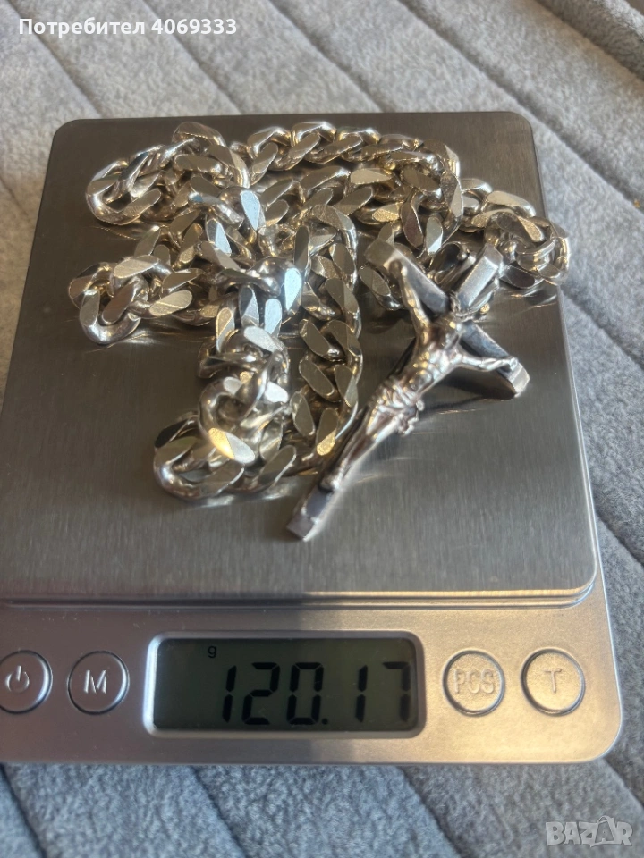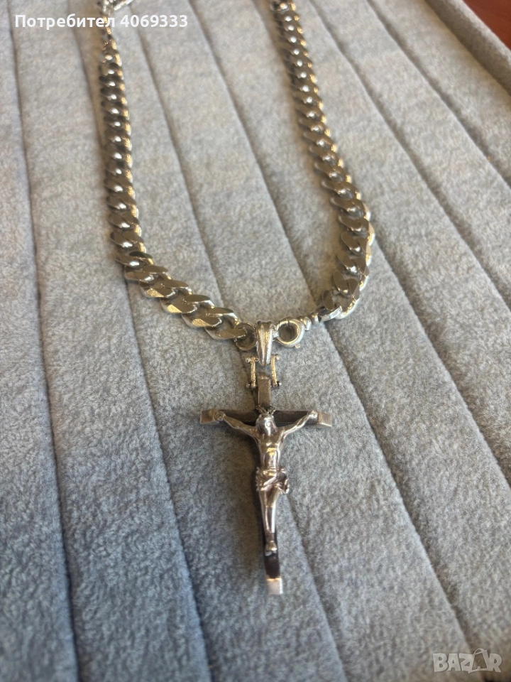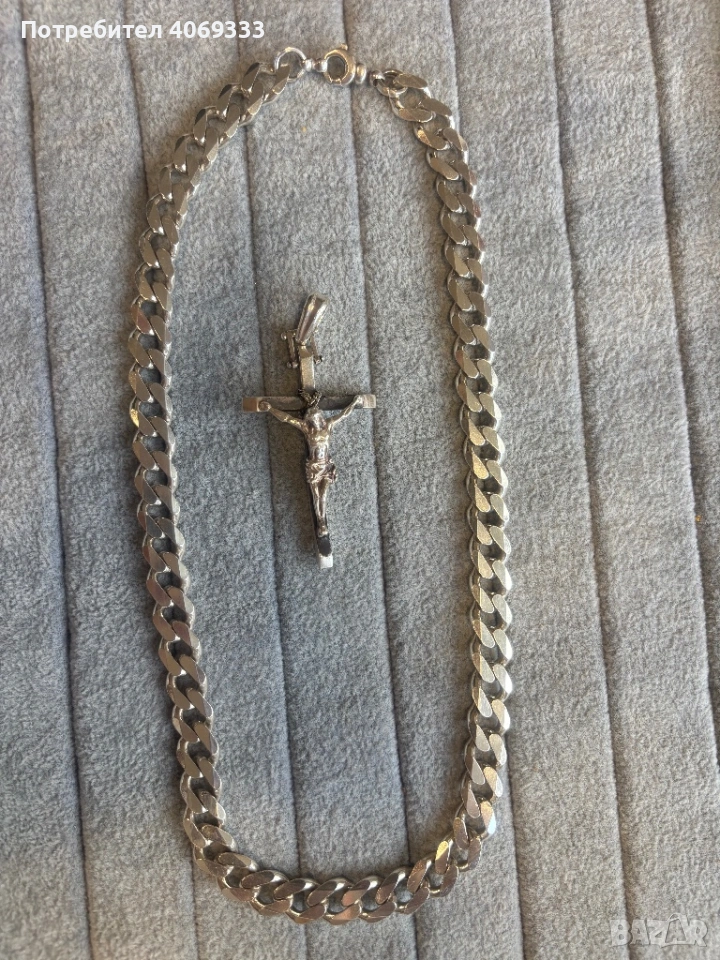 Сребърен ланец Панцер с Кръст → Обява 53517388