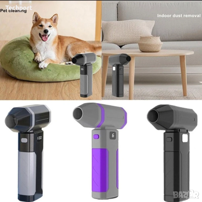 Този преносим мощен въздушен компресор/прахочистачка е идеалното решение за почистване на прах и замърсявания у дома, в офиса, в автомобила или при работа с техника. С изключително мощен безчетков мотор, достигащ 400 000 оборота в минута и скорост на въздуха до 52 m/s, устройството може да произведе сила, еквивалентна на 16 степен на тайфун.