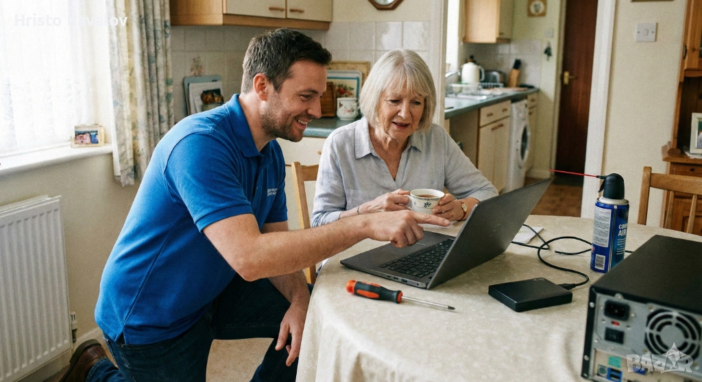 Запитване при софтуерни и хардуърни проблеми. Конфигуриране, настройки. Работа с лаптоп, PC, MAC, Android, компютри. Настройване на периферни устройства, принтери, рутер, Wi-Fi, камери и др.