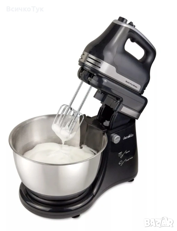 ✨Ръчен миксер с купа DECAKILA, 300 W, 4.5 L, Черен → Обява 53517505