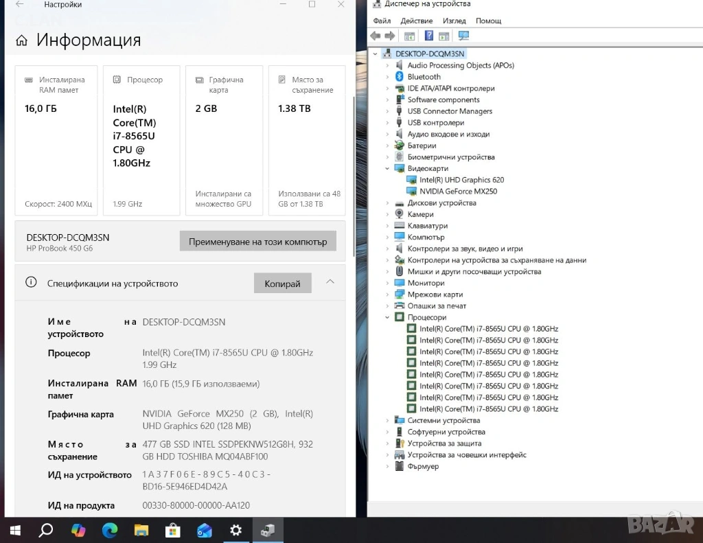 HP ProBook 450 G6 i7 8565U/16GB/512SSD/1TB HDD/MX250-2GB/FHD/Подсветка → Обява 53517524