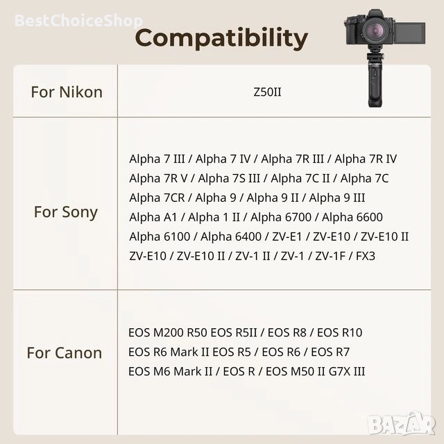 Стабилна поддръжка за различни камери: Поддържа камери до 1,5 кг като статив и 0,8 кг като селфи стик, осигурявайки стабилност за редица модели.