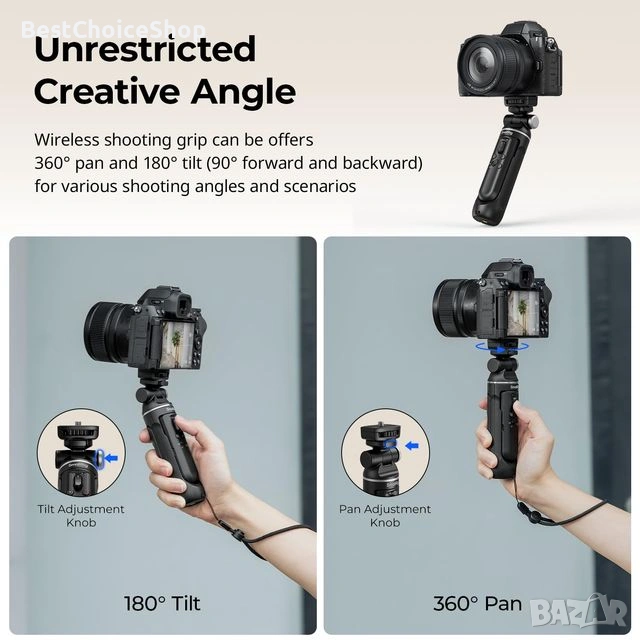 Разнообразни ъгли на снимане: Удължава се до 14,6 см за широко кадриране и предлага 360° панорамиране и 180° накланяне за различни ъгли на снимане.