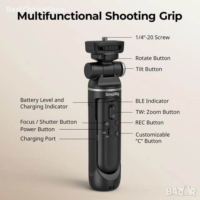 Smallrig|Модулно безжично дистанционно управление: Разполага с магнитно безжично дистанционно за избрани фотоапарати Nikon, Canon и Sony, предлагащо освобождаване на затвора, запис, фокусиране, мащабиране и персонализирани настройки.