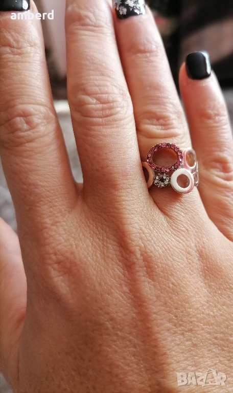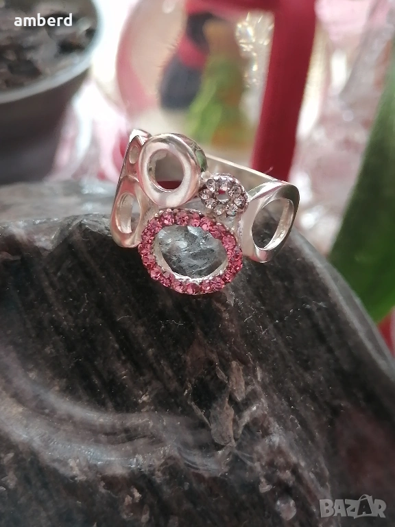 Имаме го наличен и с розови циркони с вътрешен диаметър 16,5мм и тегло - 3,35гр.