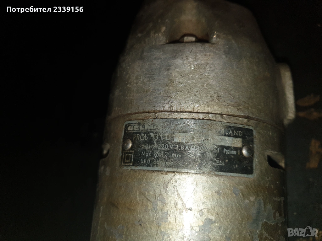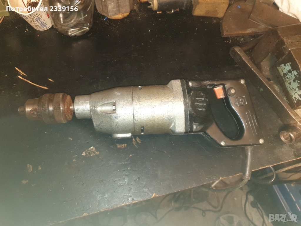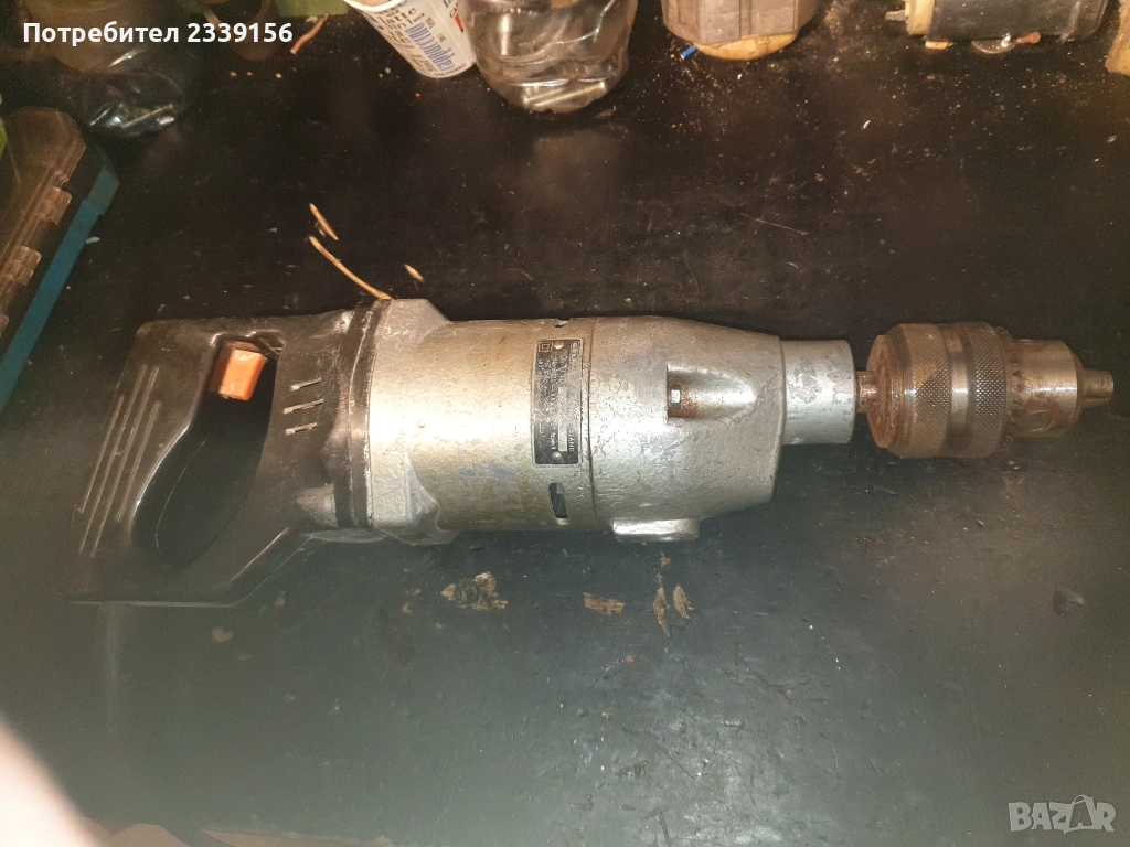 Стара дрелка. 390 вата. Произведена в Полша. Работи без забележки. Става за работа, за бъркалка и за поставяне на стойка за бормашина. Патронник до ф13.