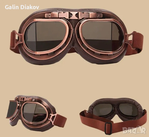 Унисекс ретро очила. Винтидж стил, ветрозащитни и прахозащитни очила с огледалена леща, регулируема ластична лента. Изключително удобни и с перфектна видимост. Напълно функционални за широкоспектърна употреба за мотор, колело, ски