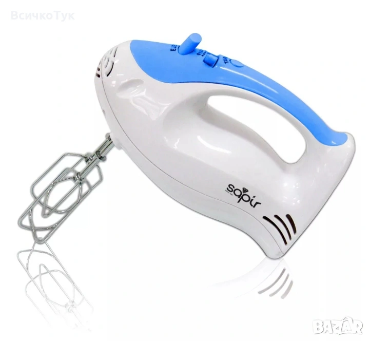 ✨Миксер SAPIR SP 1110 X, 150W, 5 скорости + Турбо, Бъркалки за яйца и тесто, бял/син → Обява 53517705