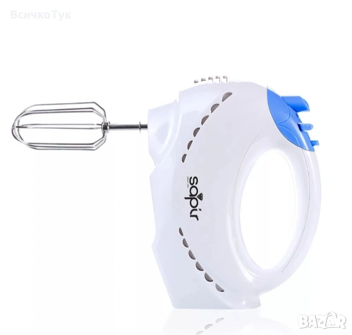 ✨Миксер SAPIR SP 1110 GPO, 200W, 5 скорости + Турбо, 4 бъркалки, Бял/син → Обява 53517727
