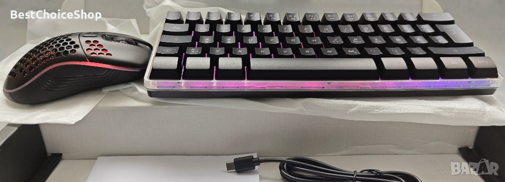 Комплект безжична геймърска клавиатура и мишка RedThunder K62, 60%, презареждаща се, многоцветна