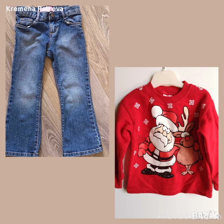 Снимка 3: Дънки, размер 104, цена 5,00€ и Коледна блузка ватирана, размер 98-104, цена 4,00€