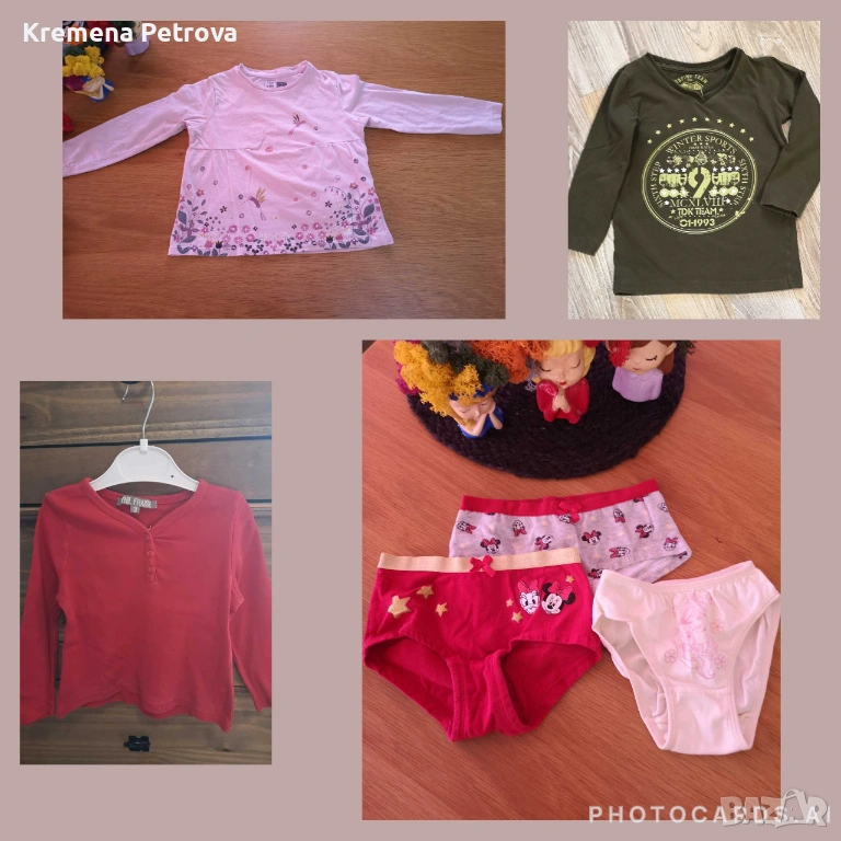 Снимка 7: размер 98: розова блузка, цена 2,00€, зелена блузка, цена 3,00€, червена блузка, цена 2,00€ и три чифта ново бельо, цена 3,00€