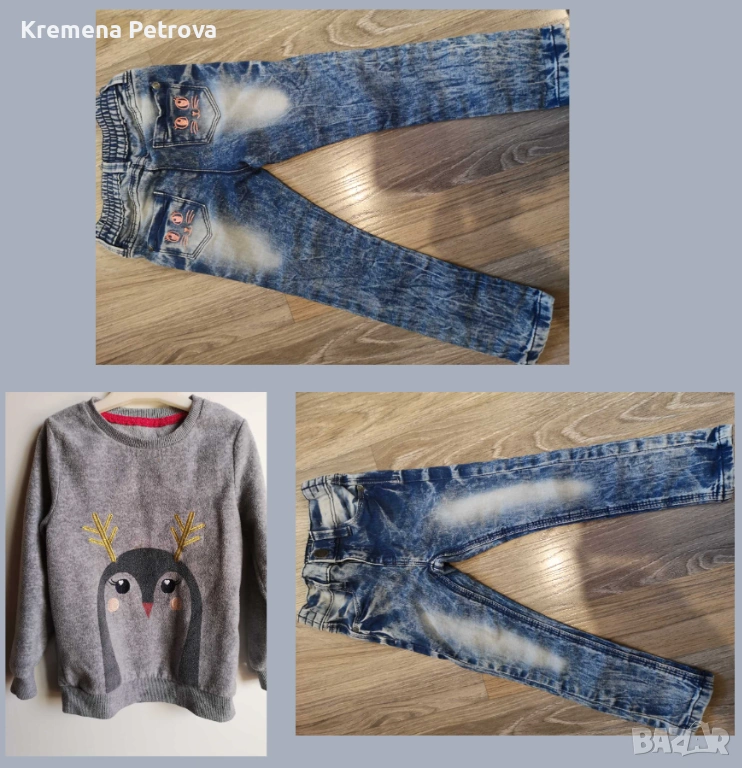 Снимка 2: Нови дънки, размер 98, цена 7,00€ и плътна блузка за предстоящите студени дни, размер 98-104, цена 4,00€