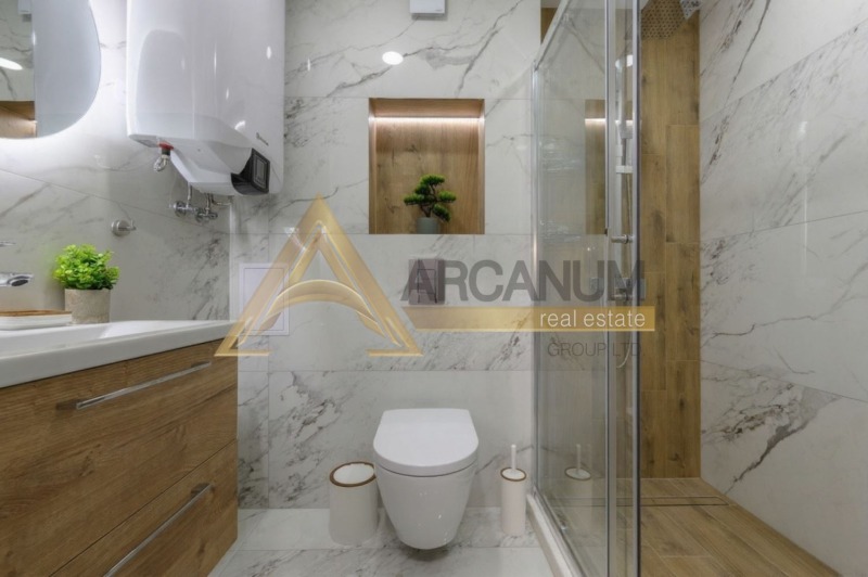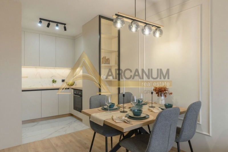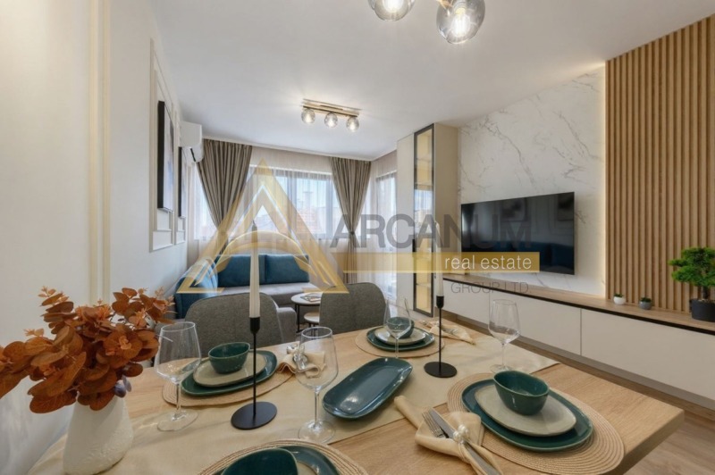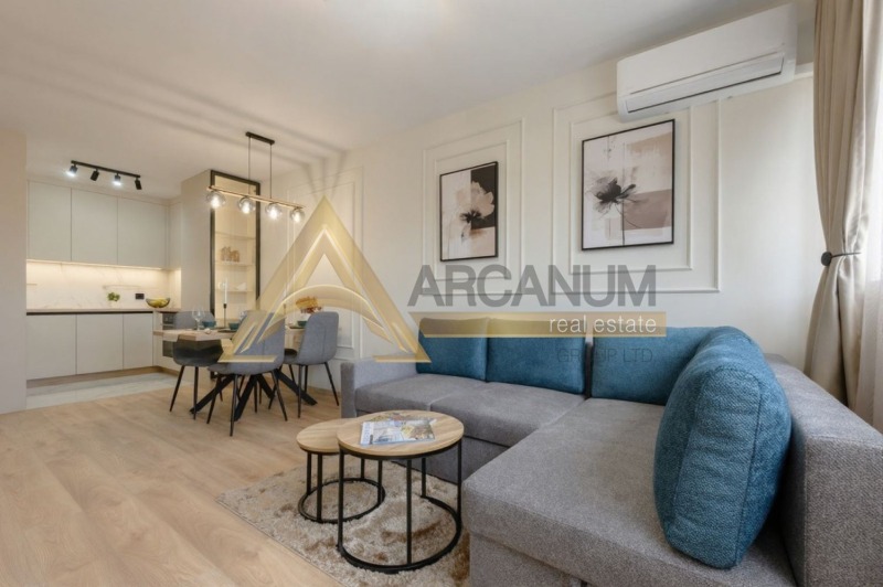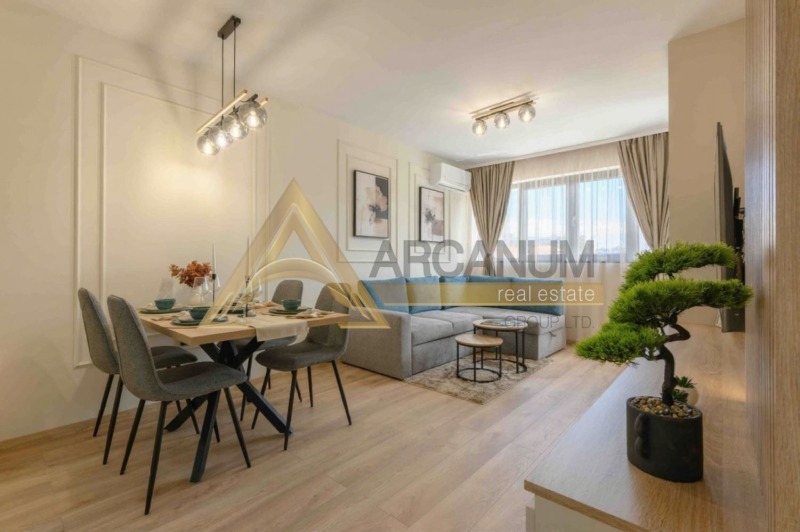 Arcanum Group отдава под наем чисто нов, дизайнерски двустаен апартамент, разположен в сърцето на Цветен квартал само 100 метра от ХЕИ.Имотът е част от нова, съвременна сграда с Акт 16 от 2025 г., отличаваща се с модерна архитектура, висок клас материали и перфектно поддържани общи части.