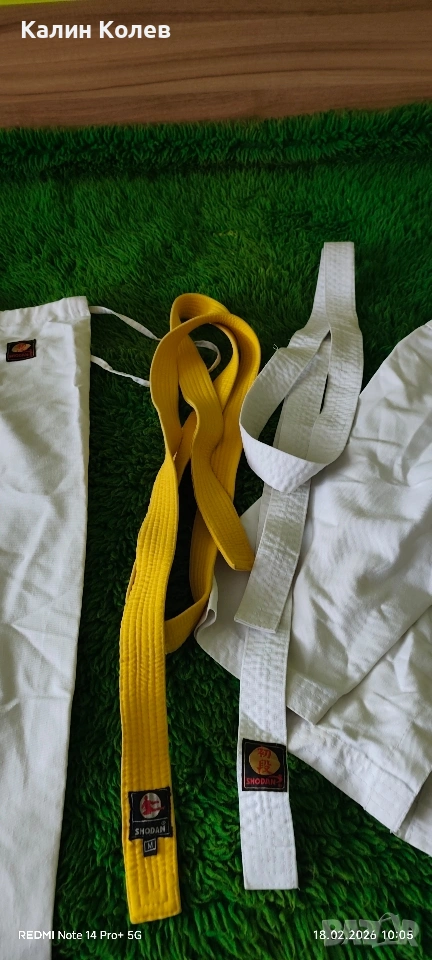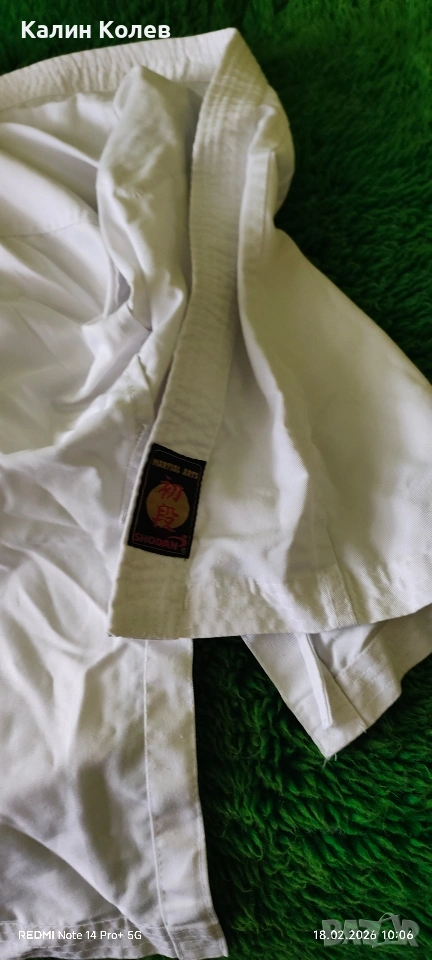 предлагам мъжко Кимоно за карате . Долнище и горнище към него и два колана ( бял, жълт). Използвано е няколко пъти ,размерът е М