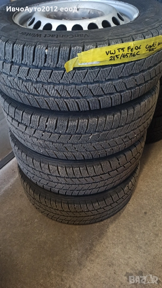 215 65 16c Continental Van contact winter 106t Най висок клас премиум зимни гуми. 9мм протектор Дот 4224 изключително запазени без каквито и да е следи от употреба или износване. Налични са четири броя цена за брой 100е. Предмет на тази обява са четири броя зимни гуми без джанти.