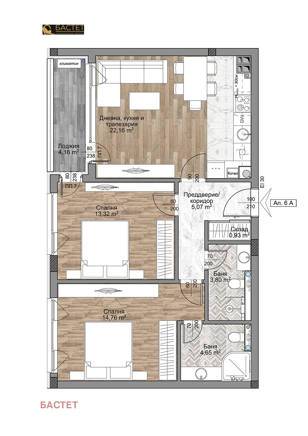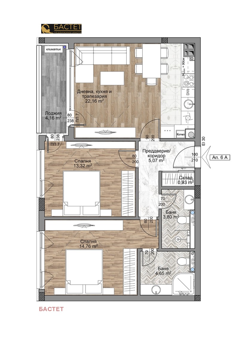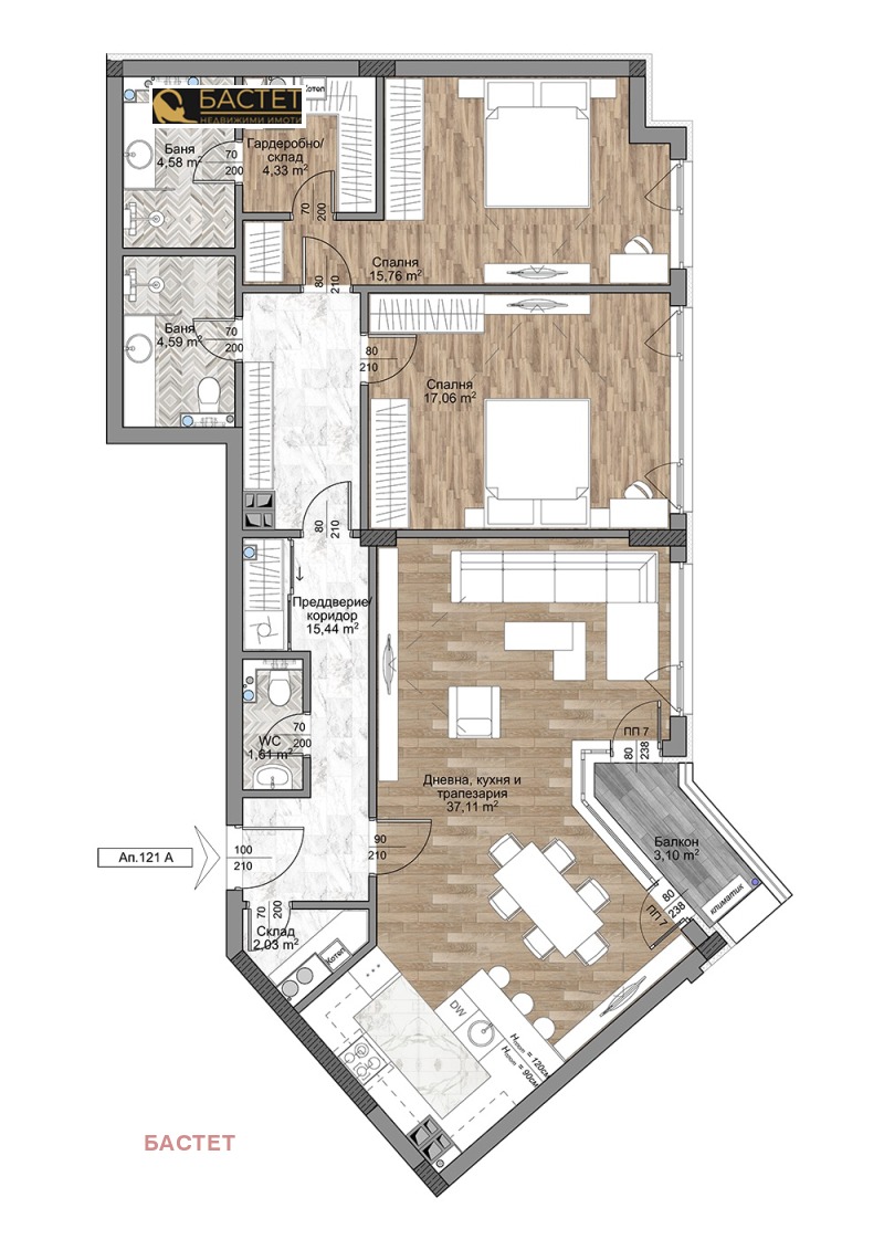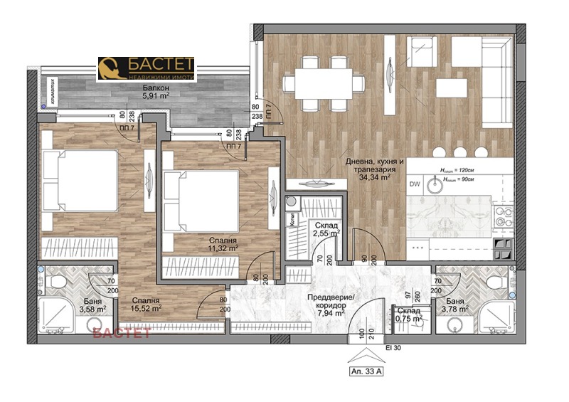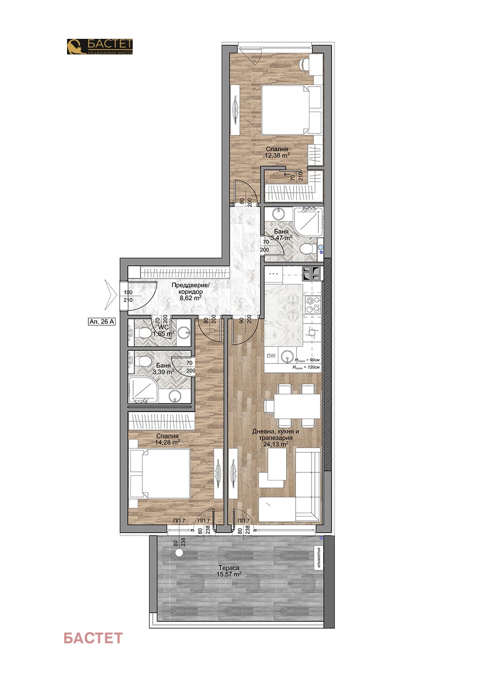 Апартаментът, който ви представяме се състои от: