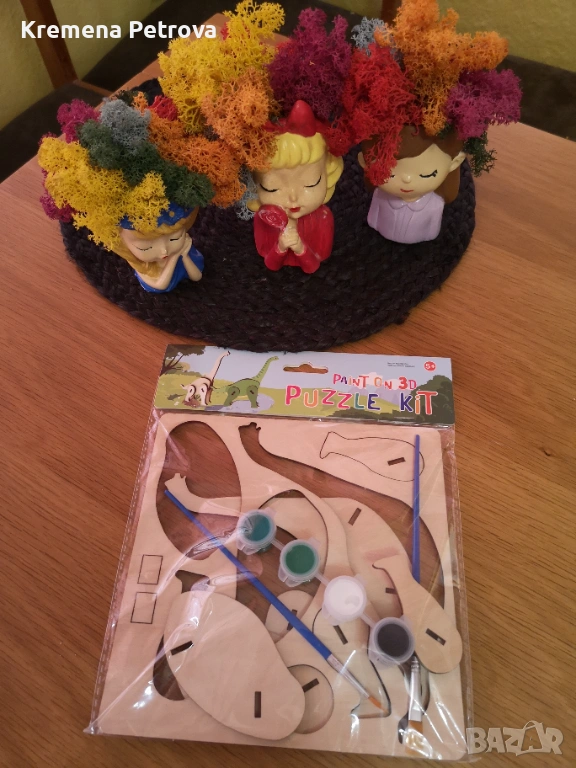*от колажа: Динозавърски лот - Нов комплект за сглобяване, играчка динозавър и нова книжка за оцветяване динозаври. Цена 4,90€