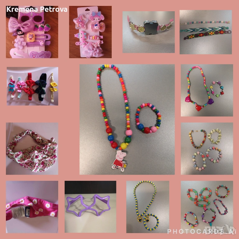 Снимка 16: Детски комплект бижута, състоящ се от колие и гривна, направени от цветни дървени мъниста Peppa Pig, 8,00 €