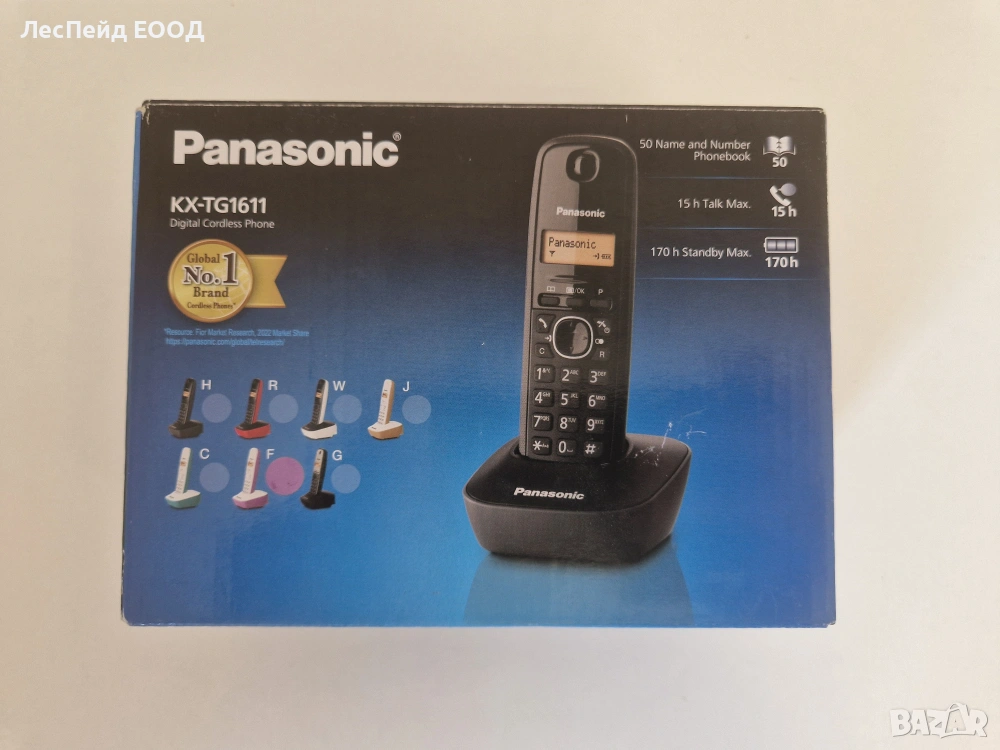 Panasonic KX-TG1611FRF. Тип: DECT телефон. Капацитет на телефонния указател: 50 записа. Идентификация на обаждащия се. Диагонал на дисплея: 3.18 см (1.25"). Цвят на продукта: Лилаво, Бяло