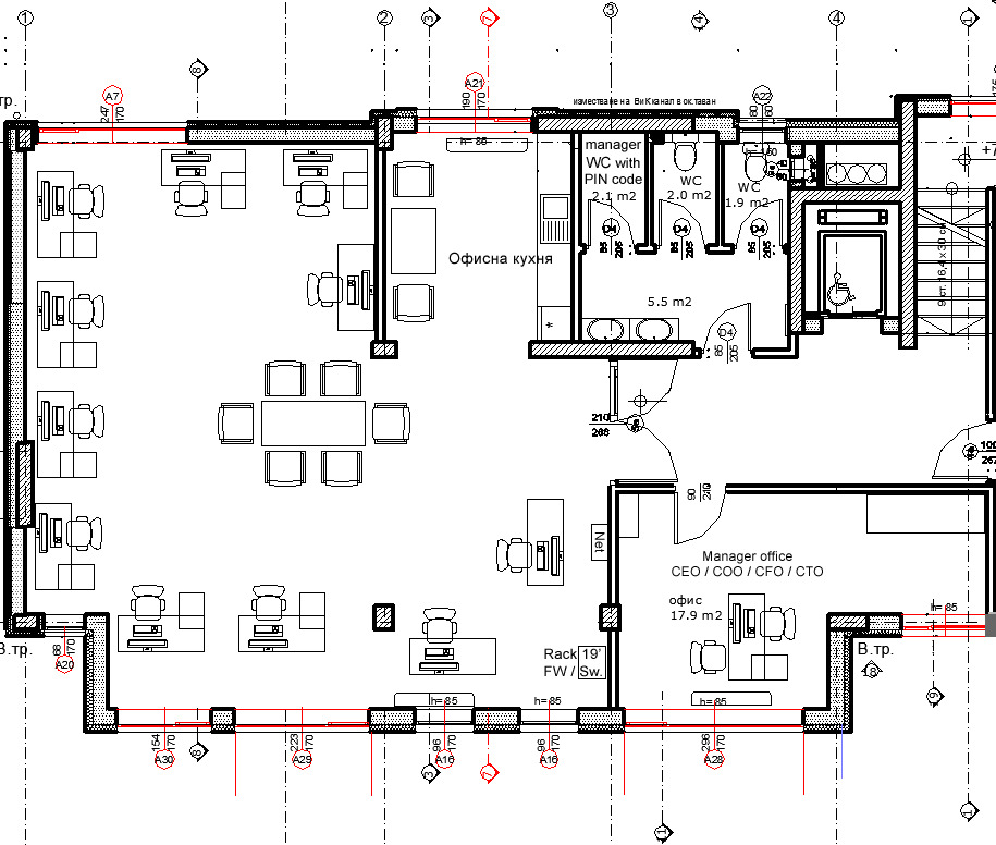 Предлагаме офис под наем на ЕТ.3 в качествена и тиха бизнес сграда в ж.к. Манастирски ливади, гр. София. Предлага се офис от 136 кв.м. с опция за паркоместа в закрит и открит паркинг към сградата. Голямо помещение тип open space (с възможност за индивидуално оформяне) с отделен кабинет за управител/manager. В офиса има изградено окабеляване с Интернет кабели до всяко работно място (FTP и оптичен Интернет). С опция (по желание) за наемане на допълнителна стая 16 кв.м. за срещи, интервюта за работа; място за хранене с 1-2 маси; склад, архив на документи, техника (без шумни сървъри). И опция за добавяне на преградна стена с врата за малък склад, или стая за пушене с прозорец. Сградата се намира в близост до бул. България в район с модерни бизнес сгради. Има бърз достъп до центъра през бул. България, също така е в близост до спирка на трамвай номер 7. Офис сградата разполага с голям озеленен двор и паркоместа за работещите в сградата. Подовете на всички етажи имат шумоизолация, водно подово отопление, охлаждане през лятото и гранитогрес за бързо и лесно почистване. В съчетание с високо-качествената алуминиева дограма с троен стъклопакет и 10см. външна топлоизолация, сградата отговаря на най-високите изисквания за шумо и топлоизолация, допринасящи за комфорт и ниски разходи за климатизация. В сградата има СОТ охрана във входа с автоматизация на вратите, видеонаблюдение и възможност за СОТ аларма в офиса. Разполага с подземни паркоместа по 80 Eвро и открити паркоместа по 45 Eвро на месец. Офиса се предлага без обзавеждане. Цената е 10 Евро на квадратен метър /отдава се от частно лице, ДДС не е дължим/. Месечната такса за поддръжка на сградата е 1.3 евро на кв.м. За повече информация за този имот, моля обадете се на телефон 0892 712 776 (на този номер няма Viber, моля обадете се). Адреса е на ул. Ралевица 74. Огледи може да се правят всеки ден. Офиса се освободи на 01.01.2026 от предишните наематели (централа на акционерно дружество), бяха наематели 8 години. Всички други офиси в сградата са отдадени под наем дългосрочно, в сградата няма шум от ремонти, всичко е напълно завършено.