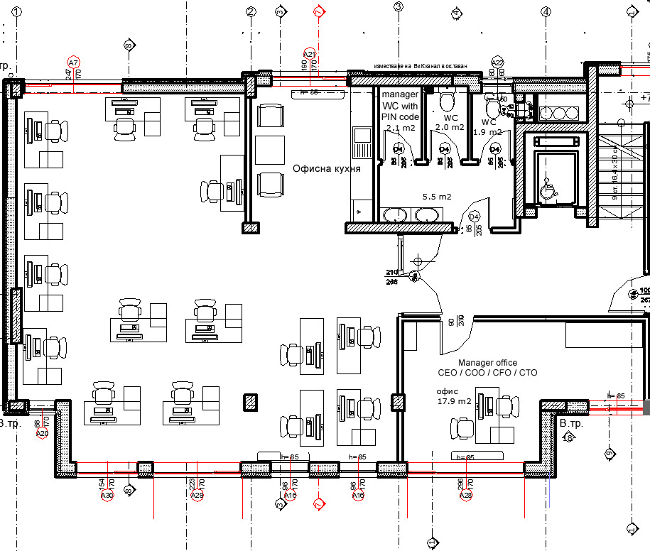 We offer office space for rent 136 sq.m. on the 3rd floor in a quality and quiet business building in Sofia, Manastirski Livadi district with convenient private parking options and automated gates. The office has a separate private manager room and a bigger open-space office with possibility for customization to meet different business needs. The office has Internet cables to each work desк (FTP and fiber optic Internet). The building is located close to Bulgaria blvd. in an area with modern office buildings. There is quick access to the center via Bulgaria blvd. It is also close to tram No7 stop. The office building includes a large landscaped outdoor space, parking, outdoor smoking area. Floors of all levels have sound insulation, under-floor heating and cooling during summer with solid granite tiles for fast and easy cleaning. In combination with high-quality triple-pane windows with aluminum frames and 10 cm. external heat-insulation, the building meets the highest requirements for noise and heat insulation, providing comfort and lower costs for heating and air conditioning. The building has a convenient access control system, security alarm in the entrance, security cameras and the option for SOT security alarm inside the office. It has underground parking spaces for 80 Euro and outdoor parking spaces for 45 Euro per month. The office is offered unfurnished. The price is 10 Euro per square meter (private owner, no VAT required). The monthly fee for the building maintenance is 1.3 euro per square meter. For more information about this property, please contact us by phone 0896 834 818, I speak fluent English (there is no Viber, please call). The address is Ralevitsa street 74. Call us to visit the property for a viewing. The office is available from 01.01.2026. The previous renter was a publicly traded company, on the Bulgarian exchange, they stayed 8+ years. All other offices in the building are rented out long-term, there is no construction noise in the building, everything is fully completed.