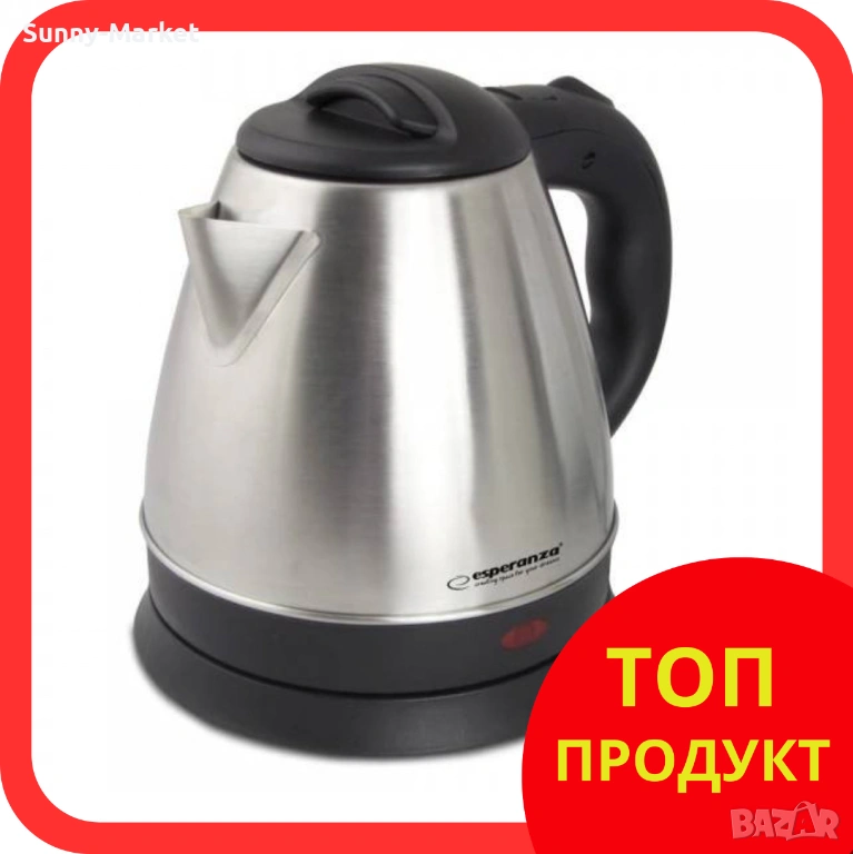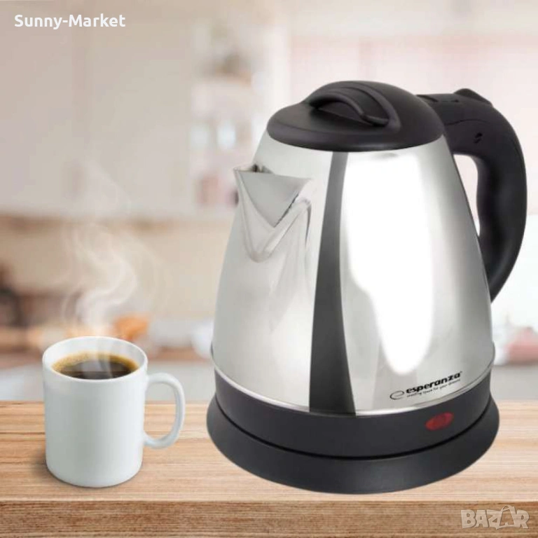 Материал: неръждаема стомана, пластмаса. Автоматично изключване след кипене. Скрит нагревателен елемент