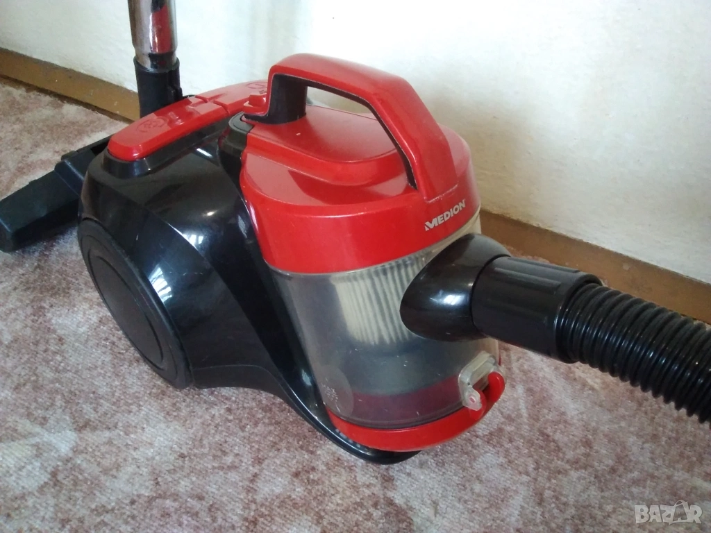 Продавам прахосмукачка MEDION произведена и закупена нова от Германия в червено и черно-без торбичка с контейнер,система циклон, телескопична тръба, накрайник реголируем за под и накрайник комбиниран за прах и тесни пространства. Използвана, работеща в отлично състояние без забележки. Моля звънете на посочения телефон, защото имам прблем с получаването на съобщения от системата.