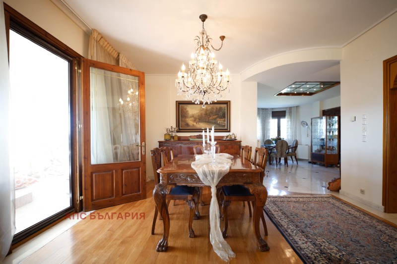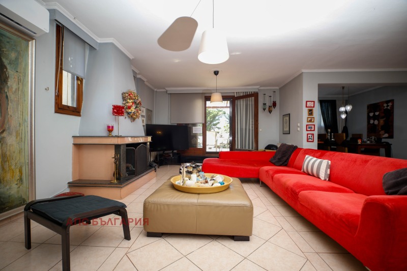 Възможност за инвестиция, невероятна вила за продажба, в Агия Триада, Солун, брутна площ 420кв.м (360кв.м нето) върху тучна зелена площ от 4 акра. Състои се от три нива: партер, първи и втори етаж. Изключителна резиденция с отлични строителни материали (мрамор, гранит, дърво), просторни пространства и отлично местоположение с безпрепятствена гледка към спиращата дъха море, града и планината. Разполага с 6 спални, 2 големи бани, 2 тоалетни, 2 всекидневни, 2 кухни, 4 трапезарии, складово помещение, големи тераси около къщата с прекрасни гледки във всички посоки, 2 камини, тенти, паравани. Отоплява се с нафтов котел и има сондаж със собствена вода, СОТ и телефонна централа. Разполага и с резервоар за пропан-бутан от 2700 литра, който може да се използва за алтернативно отопление. Намира се върху зелен парцел от 4 дка, който разполага с автоматична поливна система, външна беседка, барбекю, закрит гараж за 2 коли, външни тоалетни и складови помещения, които могат да се използват за организиране на събития в парцела, както и за много алтернативни предназначения. Той е отличен избор за големи семейства, както за постоянно живеене, така и за ваканционен дом. Може да се използва и за туристическа инвестиция поради местоположението си близо до морето, както и директния достъп до Солун-N. Провинциален път Миханионас. Струва си да се посети. Отстояние от морето 500, Тераса, Сателитна антена, Площ на парцела 4023, Енергиен клас В строеж, Селска къща, Инвестиция, Обзаведен, Допускат се домашни любимци, Вътрешно стълбище, Жилищна зона, Слънчев бойлер, Гледка, Градина, Климатик, Синтетична дограма, Луксозна резиденция, Блиндирана врата, Изложение Изток-Югоизток, Достъп Асфалт, Фасада, Паравани, Аларма, Тента , Настилка тип Мозайка, Светла