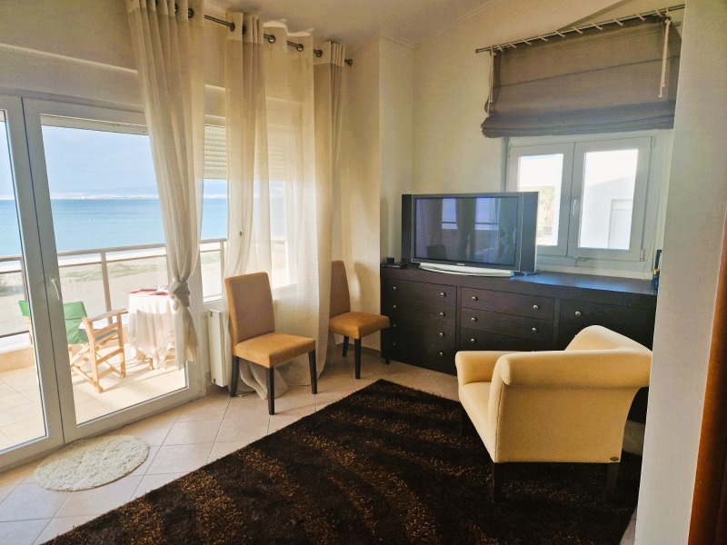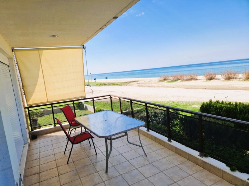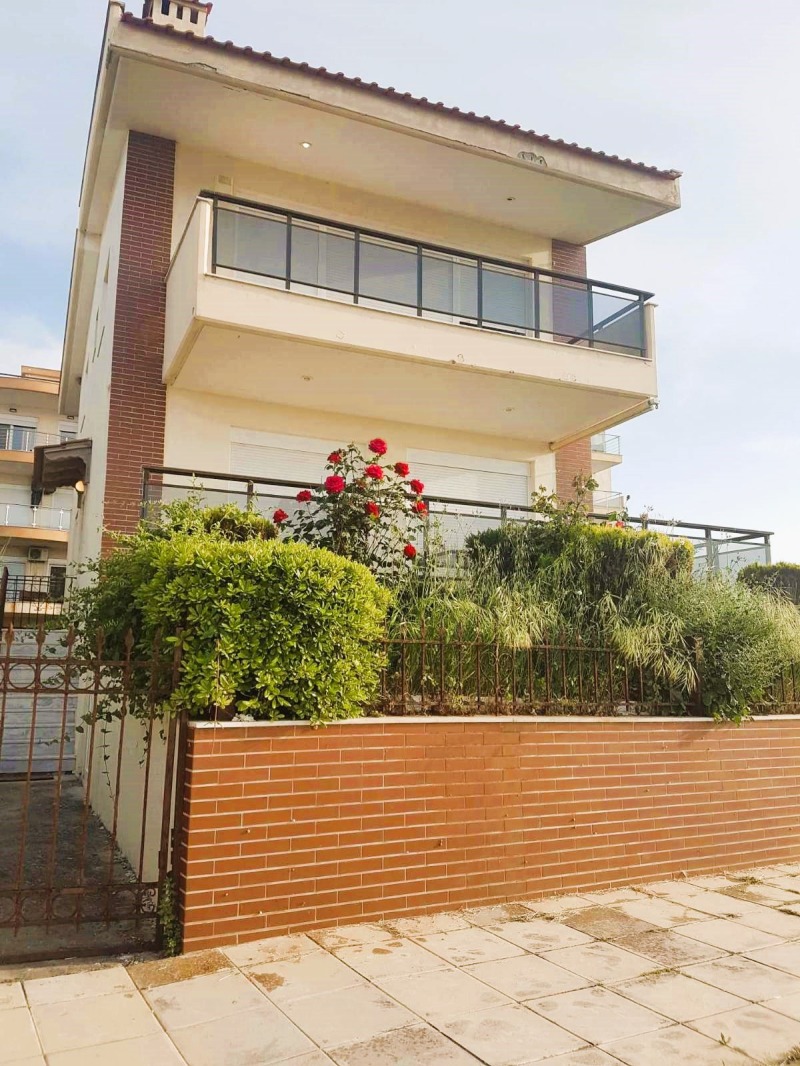 Продава се уникален мезонет с обща площ от 160 кв.м., само на 5 метра от морето. Първи на морето мезонет, на три нива, с обща площ от 160 кв.м., в района на Агия Триада. Непосредствен достъп до плажа. От големите удобни балкони и помещенията на къщата има невероятна и неограничена гледка към Термайкоския залив, летището и град Солун. Намира се на едно от най-добрите и ключови места на плажа на община Термайкос и в същото време в тиха квартал. Мезонетът е с предна фасада, светъл, слънчев и проветрив. Нищо не го закрива. Състои се от 3 спални, 2 хола, 2 кухни, 3 бани. Построен е през 2008 г. с енергиен клас Г и разполага с индивидуално отопление - нафта (има възможност за свързване с природен газ), синтетични дограми, подове от плочки, гардероби, удобно паркомясто, склад, градина, камина, джакузи, двойни стъкла, простор, вътрешно стълбище. Разпределение на нивата на мезонета: първото ниво се състои от голям и удобен хол с камина с огнеупорно стъкло и мраморна облицовка, която позволява на обитателите на къщата да се наслаждават на топлината й през зимните нощи, като същевременно се възхищават на гледката към морето. На същото ниво има трапезария и прекрасна ергономична напълно оборудвана кухня с висококачествени уреди и прозорци, които позволяват достатъчно осветление. На второто ниво се намират две просторни и слънчеви спални, които разполагат с гардероби и хол, като едната има собствена баня с душ, а на същото ниво се намира и основната баня на къщата, която разполага с вана с хидромасажна система. Нивата са свързани чрез вътрешно стълбище с мраморна облицовка и парапет. До полусутерена на мезонета се стига чрез две малки стъпала. Това пространство се състои от голям хол с кухня, в която има и подготовка за камина. Освен това има удобна спалня, баня с душ и склад. Трябва да се отбележи, че това ниво може да се използва като самостоятелно пространство, като независима къща, тъй като разполага със собствен независим вход. Мезонетът разполага с големи удобни тераси, позволяващи на обитателите да се отпуснат, наслаждавайки се на красивата гледка към морето и град Солун. Външното пространство на имота включва голяма градина, покрита с различни видове декоративни растения и дървета, както и удобно паркомясто. Отличен избор за постоянно или ваканционно жилище.
