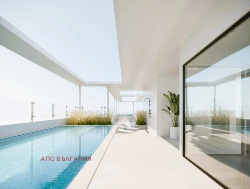 Представлява отличен избор за инвестиция в идеално жилище, което предлага на своите обитатели луксозен, удобен и функционален начин на живот. Брой етажи в сградата: 11, боядисано, веранда, сателитна антена, зарядни станции за електрически автомобили, вид стъклопакет: двоен, площ на балконите: 157 кв.м., площ на склада: 6 кв.м., енергиен клас: A+, вградено барбекю, инвестиционно, подово отопление, позволени домашни любимци, вътрешно стълбище, жилищна зона, слънчев бойлер, изглед, закрити паркоместа: 0, климатизация, алуминиеви дограми, новопостроено, апартамент на етаж, басейн, луксозно жилище, сигурна врата, южно изложение, достъп по асфалт, достъп за хора с увреждания, фасада, пентхаус, мрежи, аларма, вид подови настилки: плочки, светло.