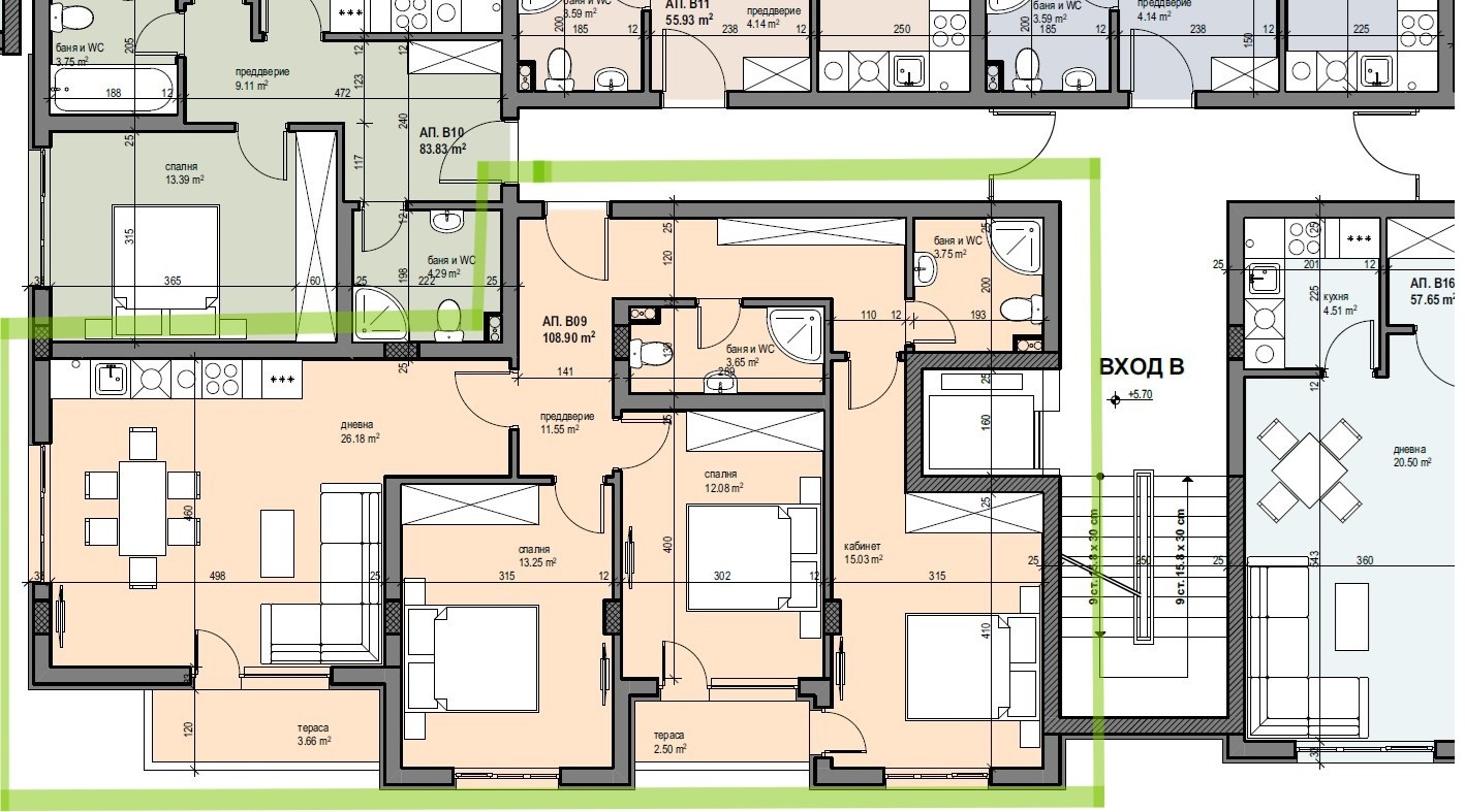 Предлагаме Ви уникален по пространство и комфорт апартамент със застроена площ 110 кв.м + 15 кв.м общи части, разположен на трети етаж в секция В на новия модерен комплекс Lincoln Residence (етап: Акт 15).
