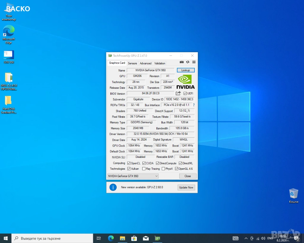Видеокарта Gigabyte  NVIDIA GeForce GTX 950 2Gb GDDR5 128bit, снимка 1 - Видеокарти - 53518732 Видеокарта Gigabyte  NVIDIA GeForce GTX 950 2Gb GDDR5 128bit, снимка 2 - Видеокарти - 53518732 Видеокарта Gigabyte  NVIDIA GeForce GTX 950 2Gb GDDR5 128bit, снимка 3 - Видеокарти - 53518732 Видеокарта Gigabyte  NVIDIA GeForce GTX 950 2Gb GDDR5 128bit, снимка 4 - Видеокарти - 53518732 Видеокарта Gigabyte  NVIDIA GeForce GTX 950 2Gb GDDR5 128bit, снимка 5 - Видеокарти - 53518732 1/5