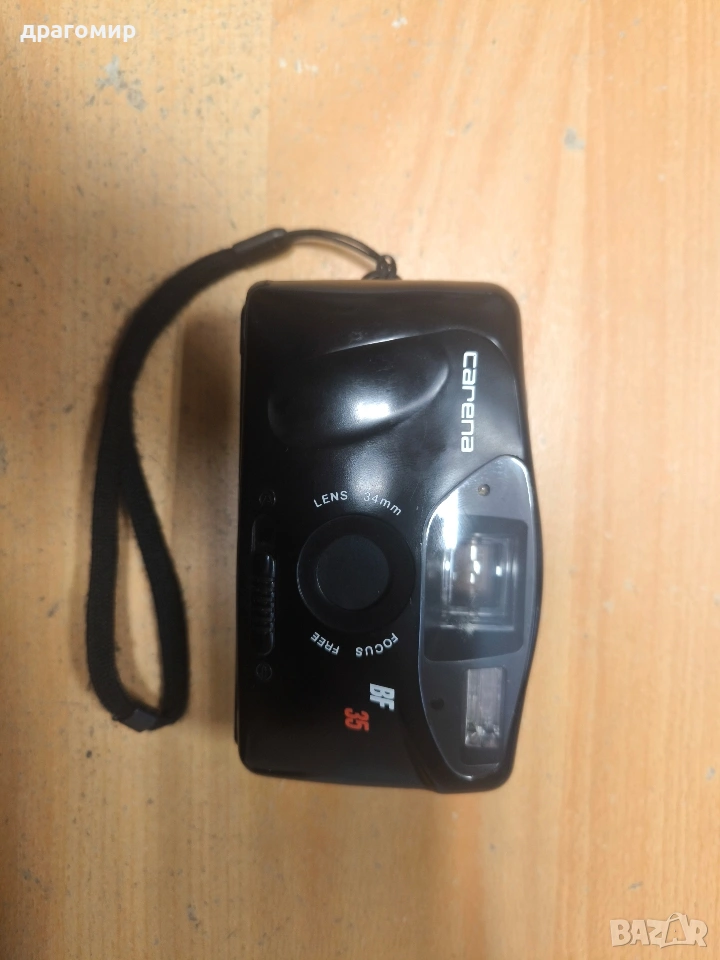 продавам лентов фотоапарат, работи,Carena BF 35, работи с две батерии АА по 1, 5 v, имам още много други фотоапарати, камери, обективи, чанти, светкавици, батерии, зарядни устройства, касети, филтри, ремъци, ленти, при закупуване на повече неща отстъпка