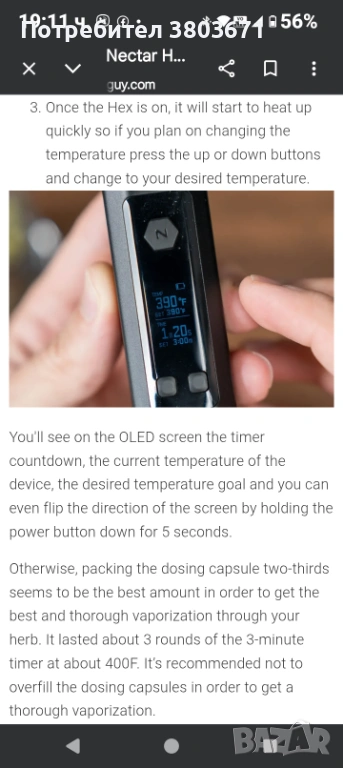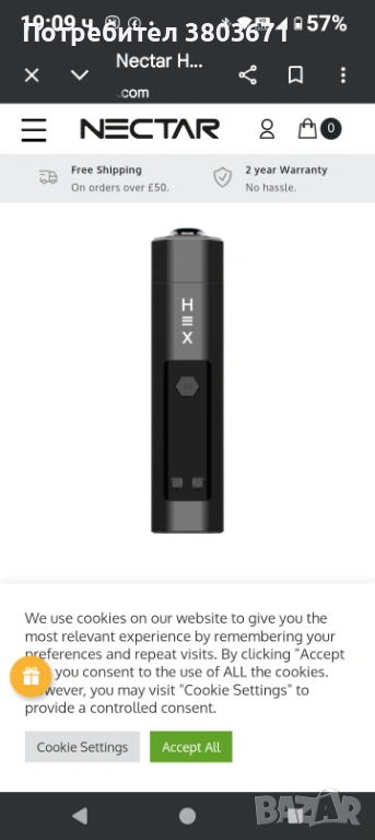 Вапоризаторът за сухи билки The Nectar Hex се отличава с възможности за регулиране и забележителни функции като контрол на температурата, таймер и OLED дисплей, които подобряват изживяването при вейпинг. Благодарение на USB-C бързото зареждане времето за чакане е минимално. Устройството включва камера с 24-каратово златно покритие и хибридна отоплителна система, осигуряващи бързо и равномерно нагряване. Допълнителни функции като мултифункционалния инструмент Magstick, таймер за сесиите, регулируем въздушен поток и система с дозиращи капсули повишават удобството при употреба.“