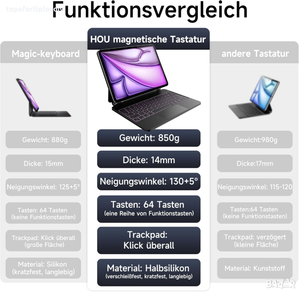 Калъф с клавиатура за iPad Air 13,2024 (M2), iPad Pro 12.9,Гаранция