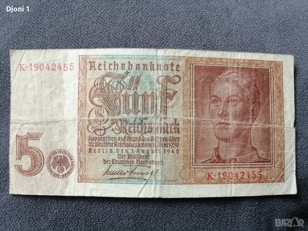 5 Reichsmark 1942 , снимка 1 - Нумизматика и бонистика - 53518985 5 Reichsmark 1942 , снимка 2 - Нумизматика и бонистика - 53518985 1/2
