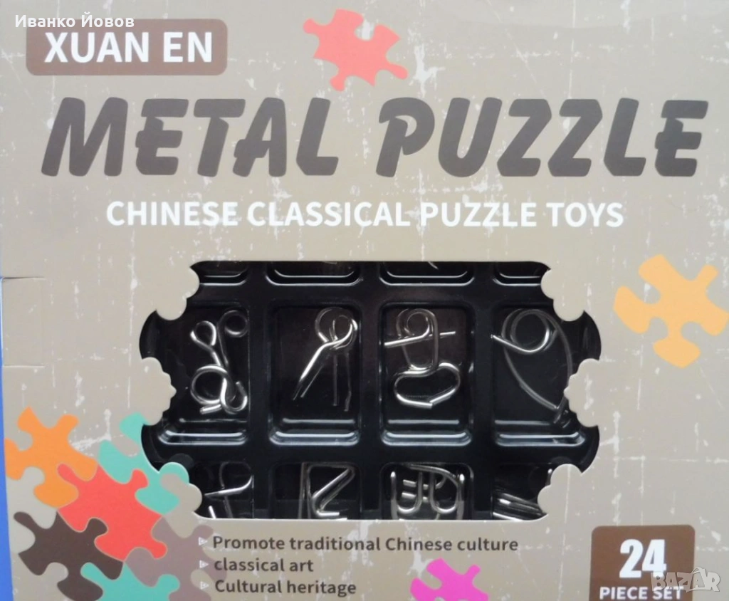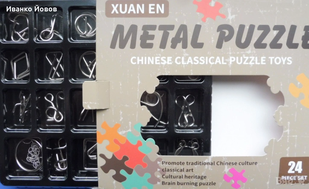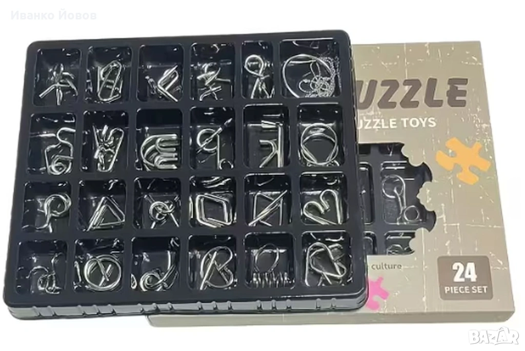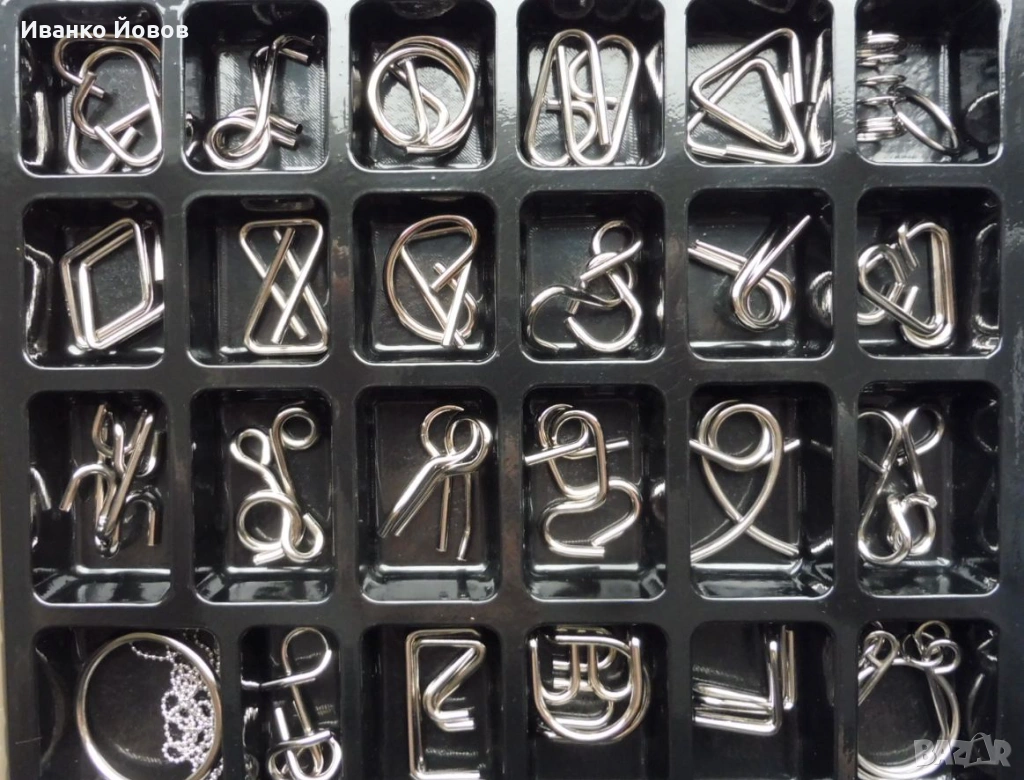 Предизвикайте себе си или своите близки и приятели с комплекта от 24 броя логически метални пъзели.