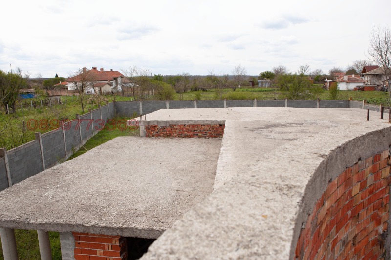 Продава се строяща се къща с уникална архитектура, под формата древна крепост, със заоблени фасади, вита стълба и наблюдателна площадка на втория етаж.
