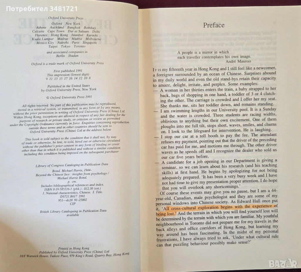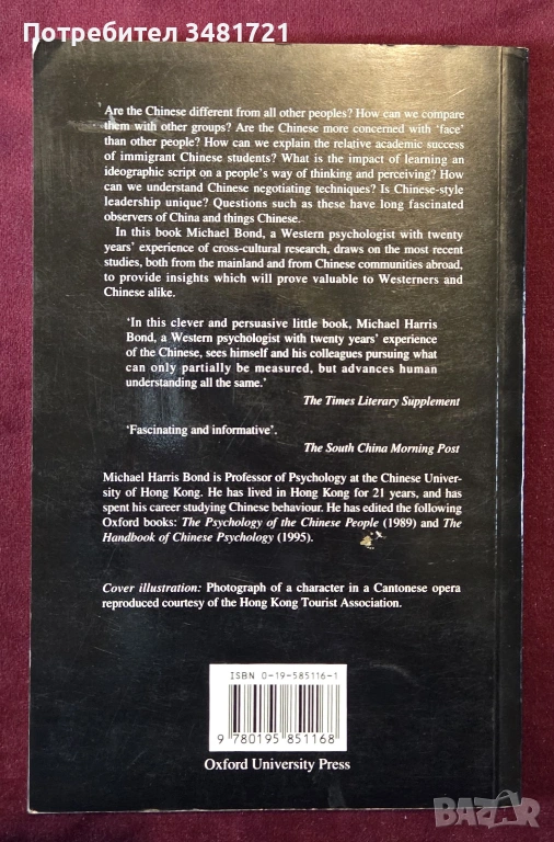 Уникален ли е китайският народ? Как изглежда той, сравнен с други групи? По-загрижени ли са китайците за фасадния образ от другите хора? Как можем да обясним относителния академичен успех на китайските студенти имигранти? Какво е влиянието на изучаването на идеографска писменост върху начина на мислене и възприятие на китайците? По-малко или повече семейно ориентирани са китайците от другите национални групи? Как можем да разберем китайските техники за водене на преговори? Въпроси като тези отдавна очароват хората, които се интересуват от Китай. В тази книга Майкъл Бонд, западен психолог, се основава на близо двадесетгодишен опит в изучаването на китайския народ, за да предостави отговори и прозрения. Ясна, без излишни думи, без жаргон или технически език, това е книга за всеки, който иска да разбере китайците, независимо дали за ежедневно социално взаимодействие, преподаване, консултиране или за бизнес отношения.