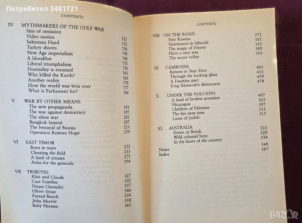 Централната част в тази негова книга заема отразяването му на събития в Източен Тимор, в който той е влязъл тайно през 1993та година, където една трета от населението е загинало в резултат на геноцидната политика на Индонезия. Това издание съдържа и още нови материали, както и всички оригинални есета - от създаването на митове за войната в Персийския залив до сюрреалистичните удоволствия на Дисниленд. Пробивайки консенсусното мълчание, Пилджър отдава почит на онези несъгласни гласове, които рядко ни е позволено да чуем.