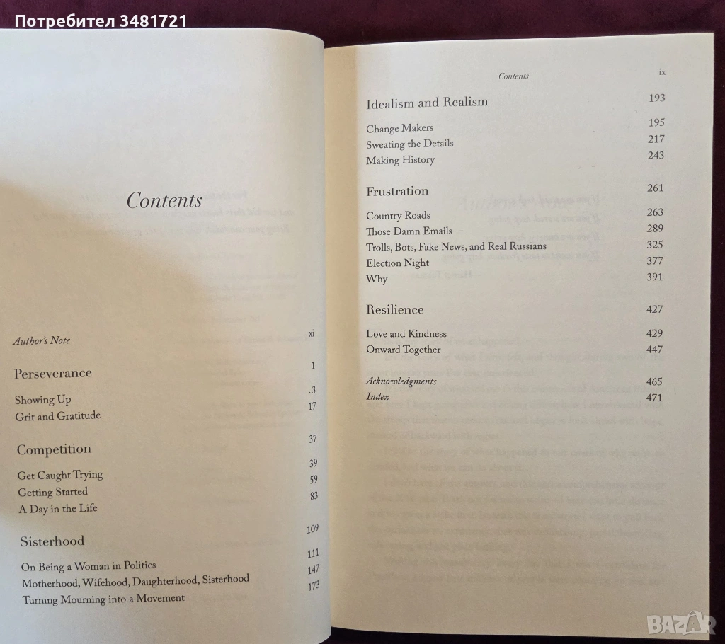 Авторът описва какво е било да се кандидатира срещу Доналд Тръмп, грешките, които е направила, как се е справила с шокираща и опустошителна загуба и как е намерила сили да се надигне отново след това. С хумор и откровеност тя разказва на читателите какво е било необходимо, за да се изправи отново на крака - ритуалите, взаимоотношенията и четенето, които са ѝ помогнали да се справи, и какво я е научил този опит за живота. Тя говори за предизвикателствата да бъдеш силна жена в очите на обществеността, за критиките относно гласа, възрастта и външния ѝ вид, както и за двойния стандарт, пред който са изправени жените в политиката.