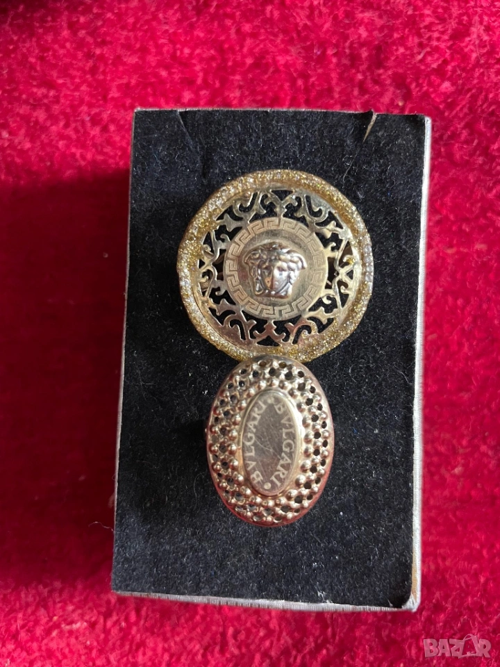 Продавам два златни пръстена Versace и Bvlgari, цена по 111 евро за 1 грам. Ако се купят и двата пръстена, ще има лека отстъпка. Още снимки при поискване.