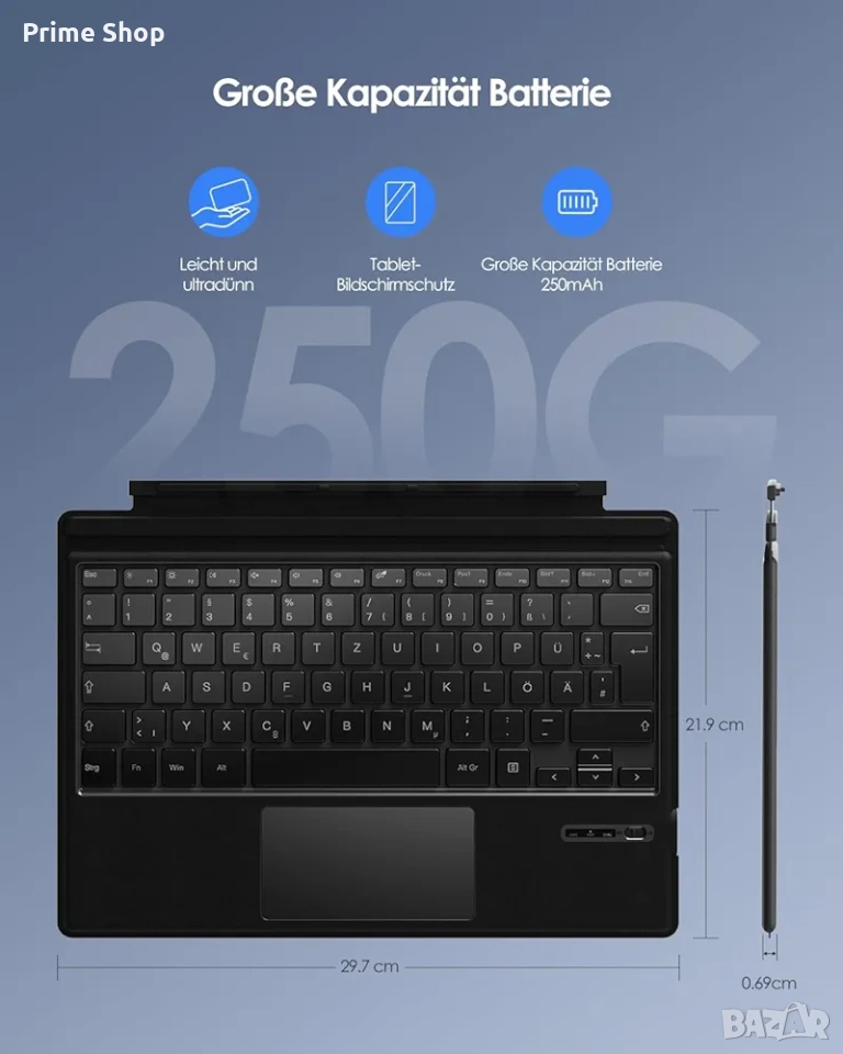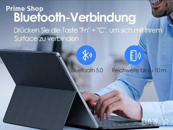 безжична клавиатура, Bluetooth клавиатура, Qulose, Microsoft Surface Pro, Surface Pro 7, Surface Pro 6, клавиатура за таблет, магнитно закрепване, QWERTZ клавиатура, аксесоари за таблет