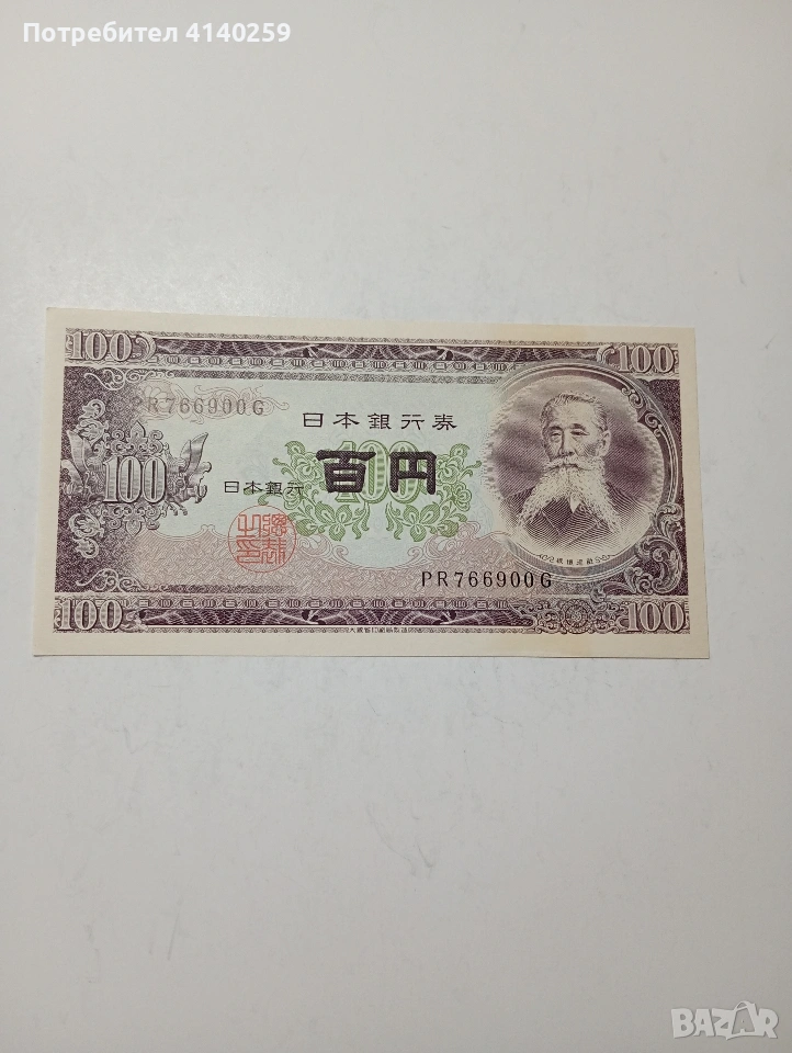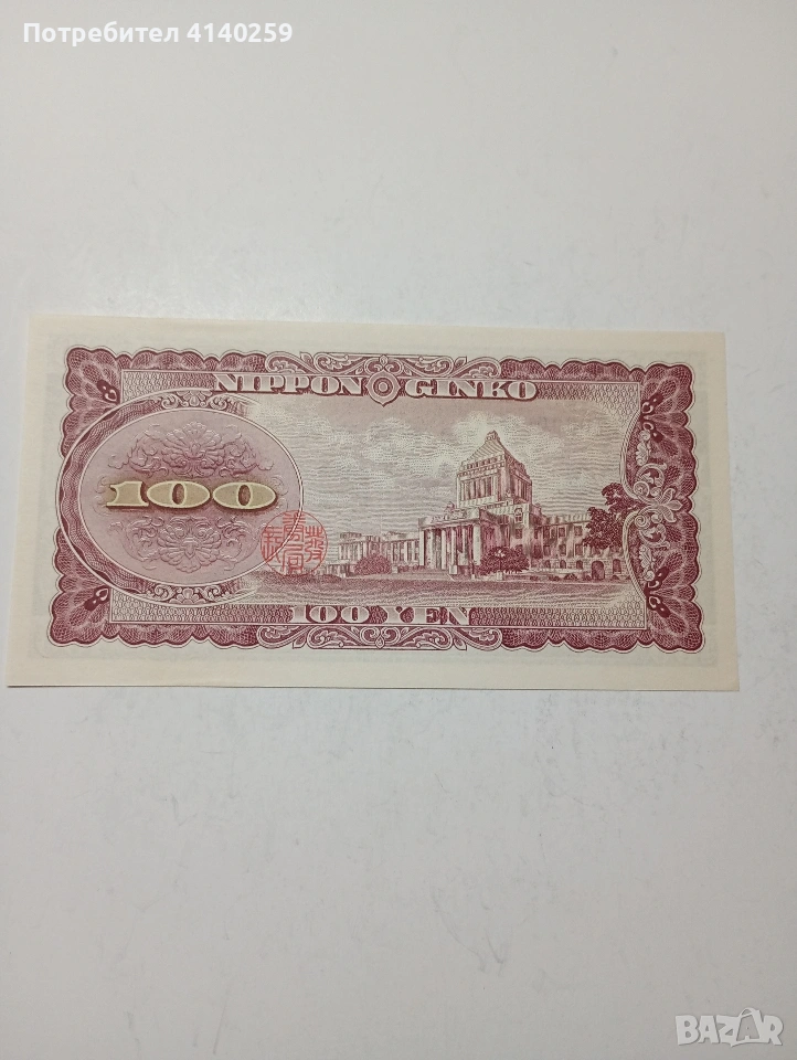 ЯПОНИЯ БАНКНОТА 100 ЙЕНИ 1953 Г СЪСТОЯНИЕ НОВО КОЛЕКЦИОНЕРСКА ПОЛУЧАВАТЕ СНИМАНАТА БАНКНОТА РАЗГЛЕДАЙТЕ ДРУГИТЕ МИ ОБЯВИ ДА КОМБИНИРАТЕ ДОСТАВКА ЕКОНТ ЗА ВАРНА ЛИЧНО