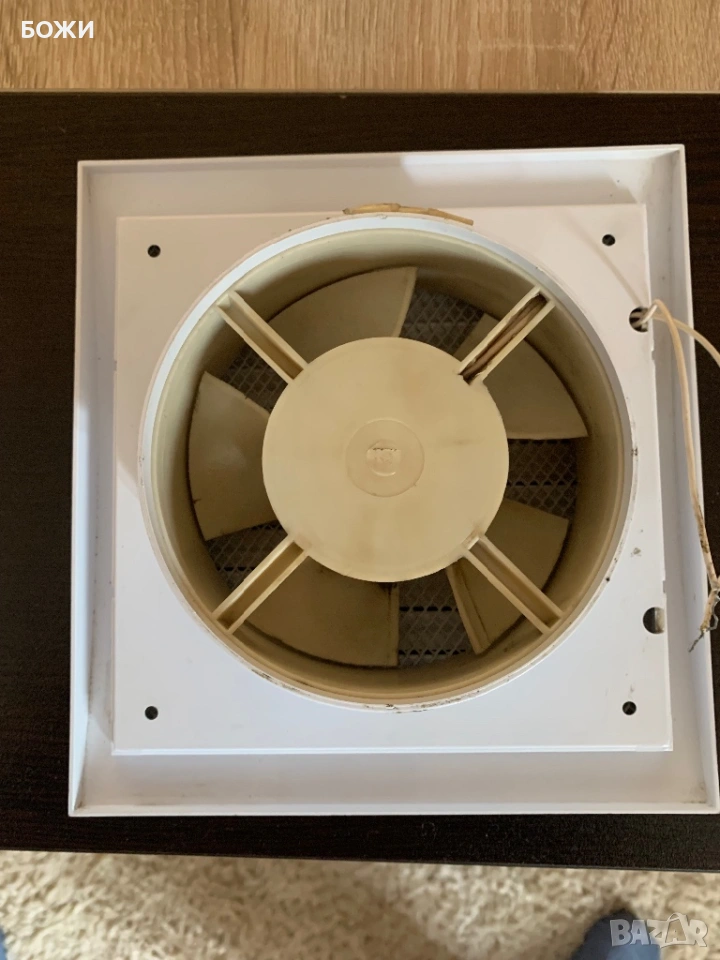 Продавам вентилатор за баня с диаметър Ø120 мм, подходящ за баня, тоалетна или други влажни помещения. Работи нормално и е в добро състояние.