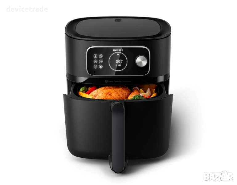 Насладете се на вкусна храна с до 99% по-малко добавена мазнина.* Патентованата технология Rapid CombiAir с уникален звездообразен дизайн използва нашия най-бърз динамичен двоен въздушен поток, който обгръща храната и минава през нея, осигурявайки равномерно готвене с перфектна текстура отвътре и отвън, за голямо разнообразие от вкусни ястия за 40% по-малко време**.