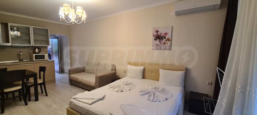 Представяме напълно обзаведено студио за продажба в поддържан крайбрежен комплекс на първа линия до морето, само на няколко крачки от пясъчната ивица на един от най-популярните плажове до гр. Созопол.