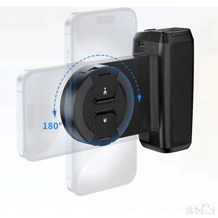 Дръжка с магнитна MagSafe стойка за закрепване на телефони (за телефони без MagSafe система, в комплекта е включен залепящ се магнитен пръстен).