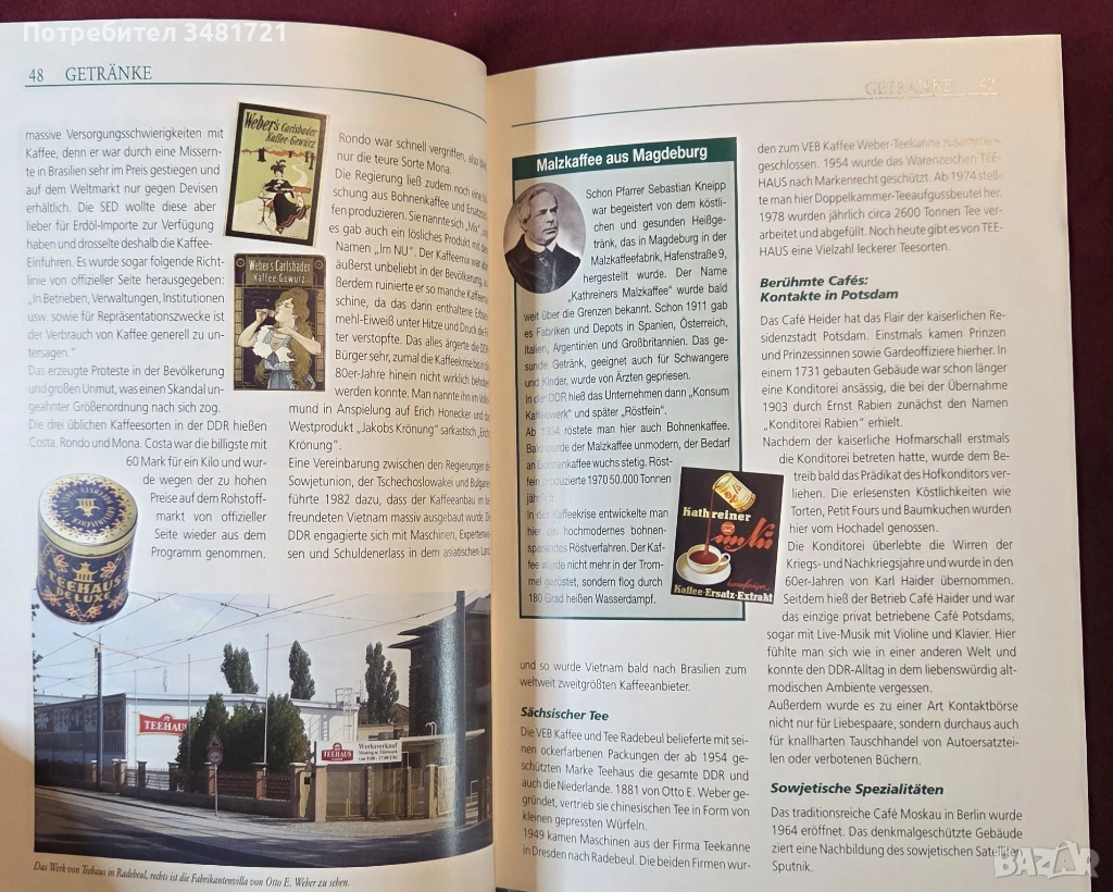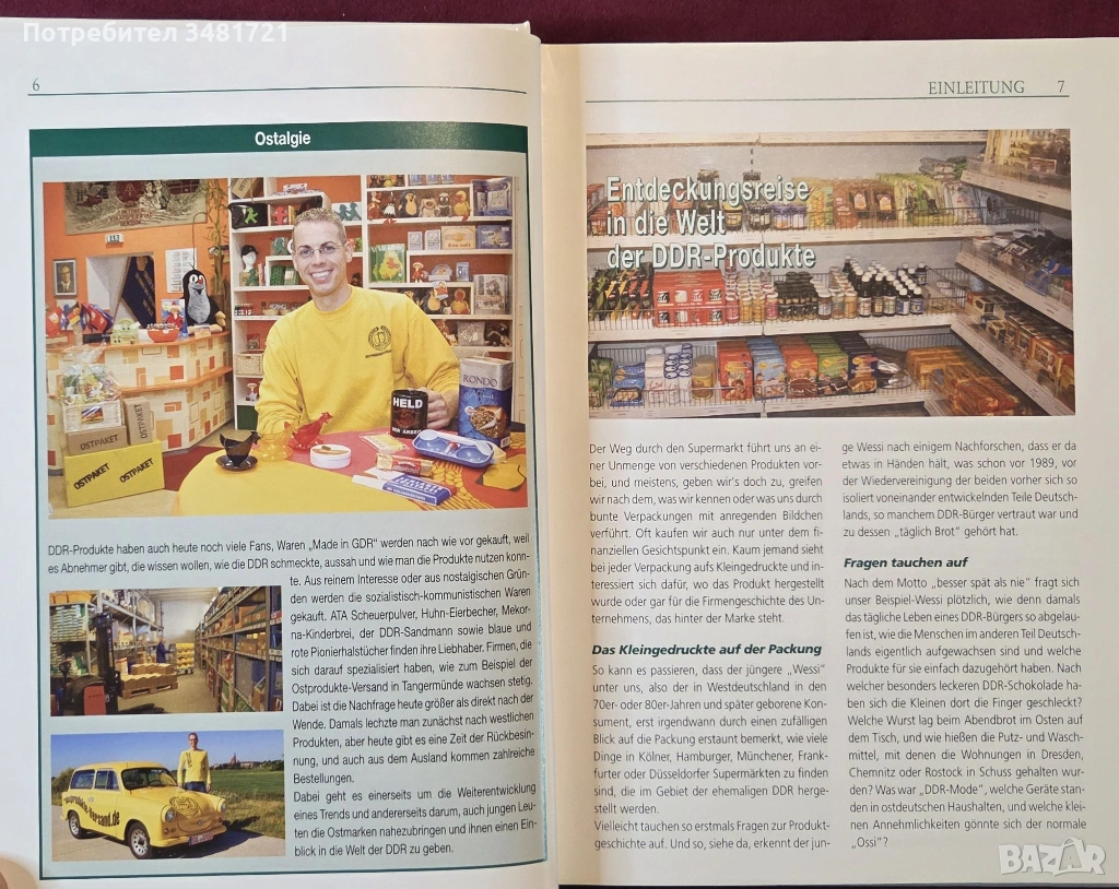 От автомобили и мотори, през напитки и дрехи, до телевизори, фотоапарати и играчки - това е историята на най-известните източногермански марки и модели, представена в текст и илюстрации. Книгата е разделена тематично, като тя включва както описание и контекст за различните продукти и предмети, така и обща история на ГДР.